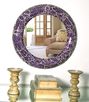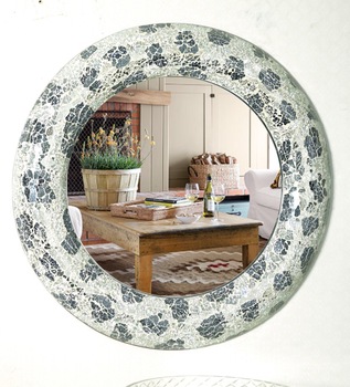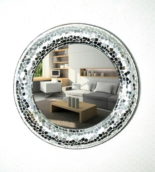 Espejo de pared decorativo, espejo de mosaico de forma redonda de cristal, piedra y concha de mar, espejo de pared para decoración del hogar, exportador indio